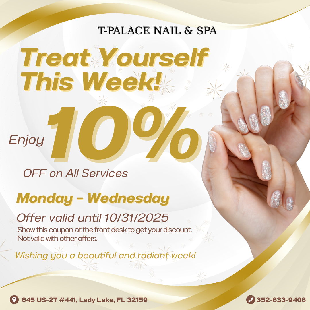 Discover the difference that passion, precision, and a little sparkle can make. T-Palace Nail Salon & Spa in Lady Lake, FL 32159 is built on the belief that beauty should be joyful, empowering, and accessible to everyone who walks through our doors.